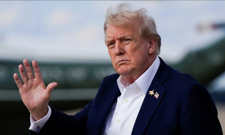 U.S. President Donald Trump was photographed gesturing as he arrived at Joint Base Andrews on September 26, 2025.